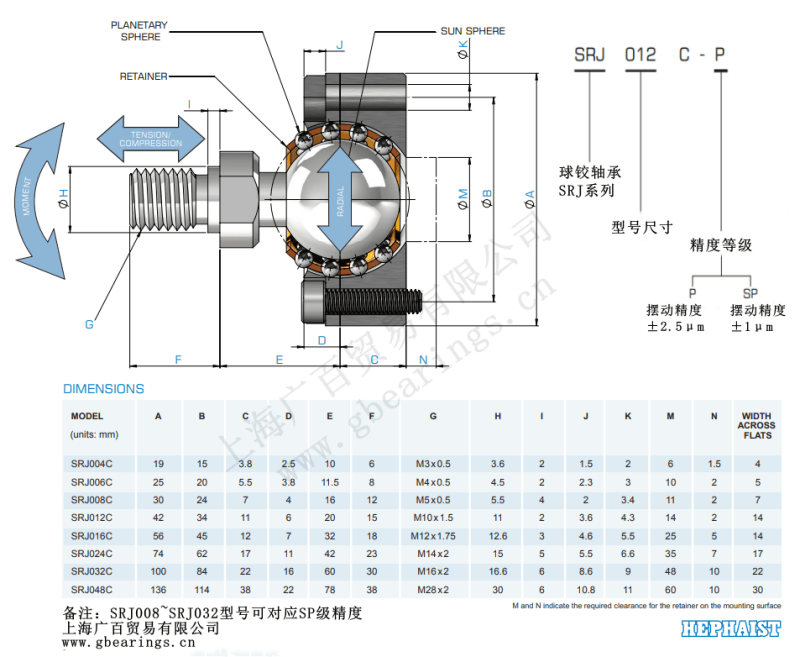 Hephaist萬(wàn)向球鉸, SRJ032CSP
